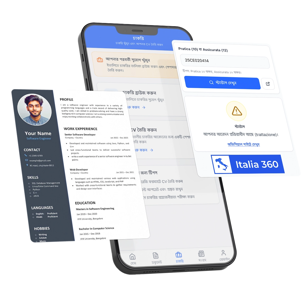 সম্পূর্ণ অ্যাপ — বাংলা, ইতালিয়ান ও ইংরেজি ভাষায় পাওয়া যায়।
